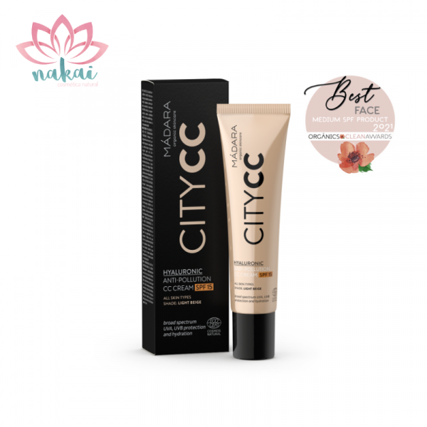 CC Cream Antipolución SPF15 de Mádara protege, revitaliza y embellece la piel para una tez radiante y de aspecto natural impecable.