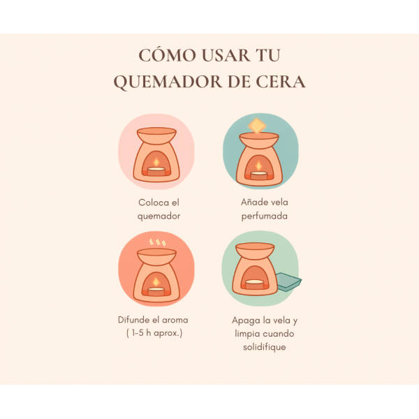 Es especialmente indicado para quienes buscan perfumar su hogar con un toque ritual y natural. Aporta calidez visual, es práctico, fácil de limpiar y permite cambiar de aroma con facilidad. Basta dejar que la cera se enfríe y solidifique, retirarla con cuidado (puede usarse un disco de algodón tibio) y colocar la nueva. También es posible mezclar ceras, comenzando con pequeñas proporciones para ajustar la intensidad.