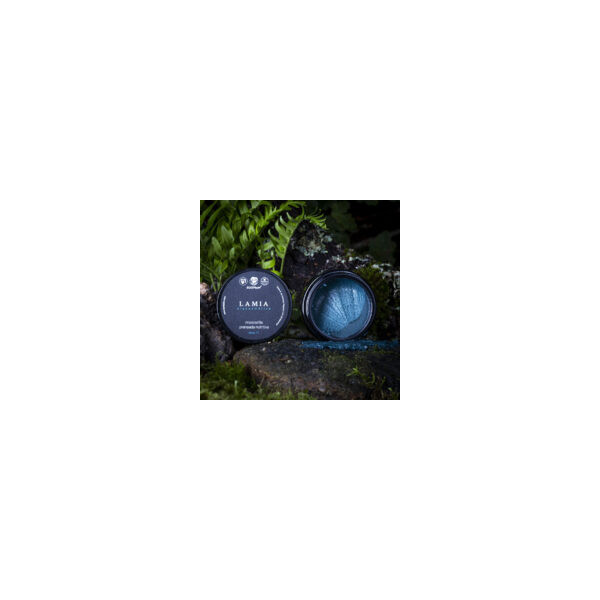 Una mascarilla que parece alquimia. Se presenta como un bálsamo de textura compacta de un precioso azul verdoso, con un aroma calmante y profundamente sensorial. Al tomar una pequeña cantidad y mezclarla con agua o hidrolato en un cuenco, se activa y se convierte en una crema suave de color azul turquesa. Ese color viene de la ficocianina, la fracción azul de la espirulina, y es la señal de que los activos están listos para trabajar.