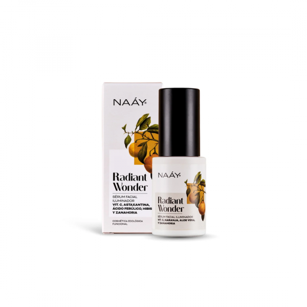 Radiant Wonder es un sérum sedoso y ligero que devuelve la luminosidad a las pieles apagadas, con manchas o marcas, y ayuda a reducir líneas de expresión y flacidez. Su fórmula innovadora combina Vitamina C de origen natural, estable y no irritante, con potentes antioxidantes como la astaxantina y el ácido ferúlico, logrando una acción iluminadora, despigmentante y fotoprotectora.