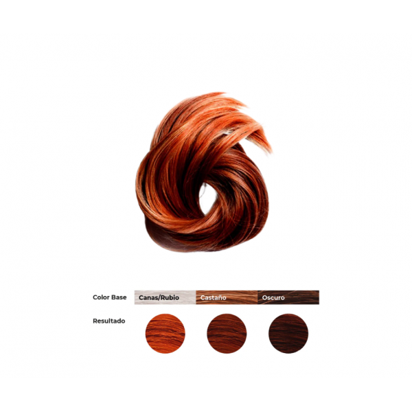 - Color castaño caoba permanente, cálido y vibrante.
